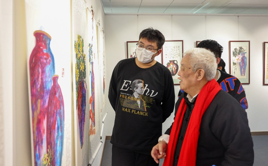 开幕仪式上,雷玉江与余世诚共同为展览揭幕。余世诚在致辞中讲述了自己把钧瓷窑变色彩引入国画,将钧瓷艺术与中国画国粹相结合并进行探索与创作的经历,以重彩泼洒的技法再现钧瓷奇妙窑变的效果,希望以钧瓷画的绚丽多彩为学校送上新春祝福。随后,师生一同观看了展览。本次展览共展出余世诚教授118幅钧瓷国画作品。
