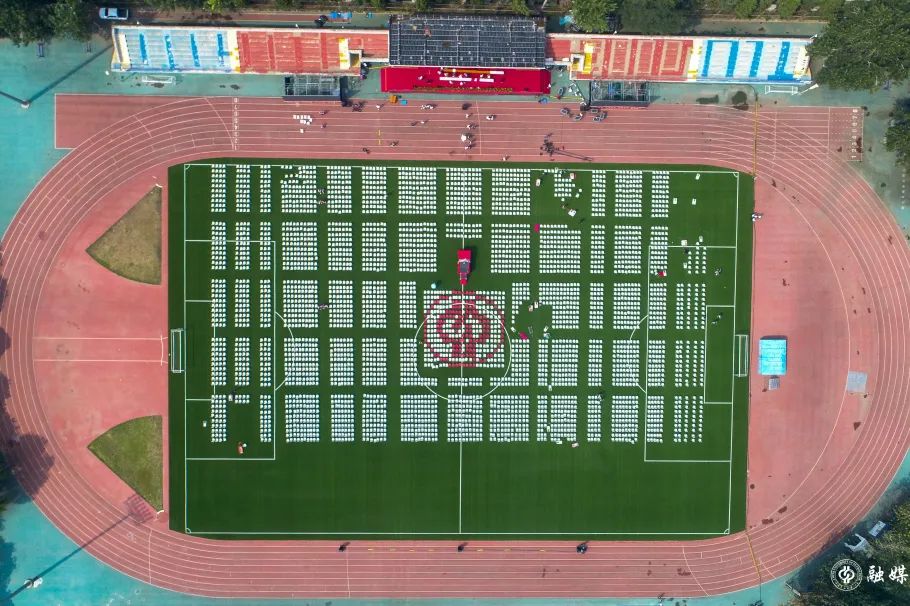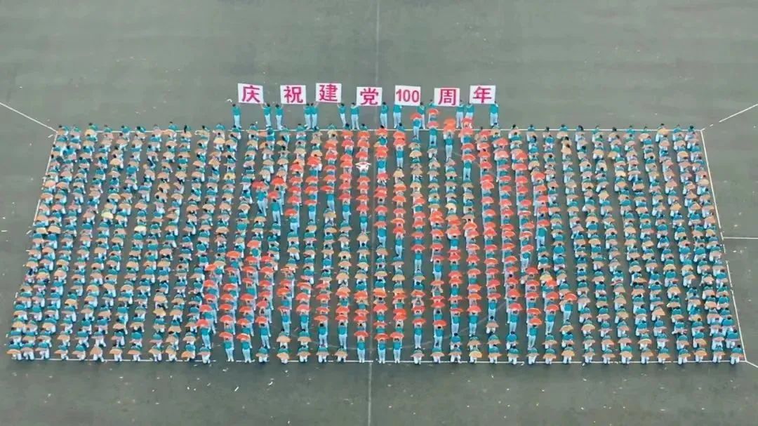 2021年春季田径运动会上,师生为建党百年准备的团体操方阵表演