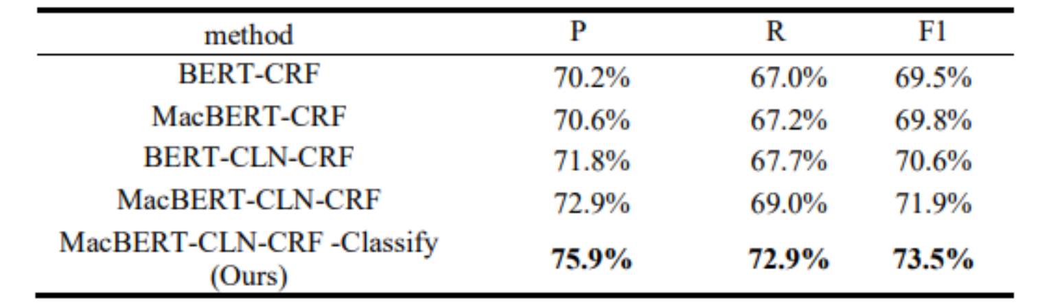 通过五组消融实验,可以看到在面向疫情防控领域新闻数据集上,各个模块对BERT-CRF模型都有提升效果,在使用MacBERT替换成BERT的同时加入CLN层,并使用论元分组抽取的策略,使本章模型得到了最大程度地提升。综上所述,本章模型能有效地抽取事件论元。
