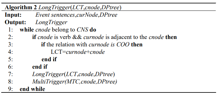 针对以上3个规则,可得出触发词链生成算法,如算法1所示。