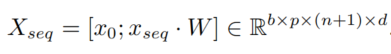 然后利用一个线性投影层将子序列映射到高维嵌入空间,并引入可学习的类别标记,连接成标记嵌入序列,表示为: