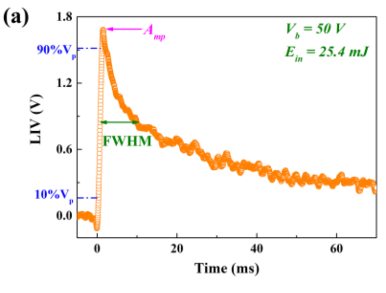 高能脉冲激光辐照在油页岩表面产生的激光诱导等离子体(LIP)会在自身浓度、温度梯度和外部电场下运动(图2),在外部电路可检测到图3所示的电信号。