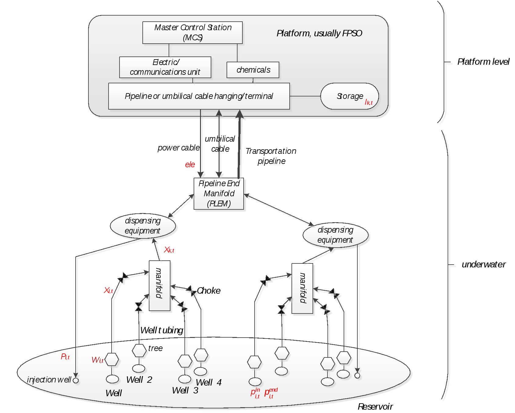 从井到平台,整个生产过程一般可分为三部分:井下储层过程、水下生产过程和水上平台段。如图1所示。