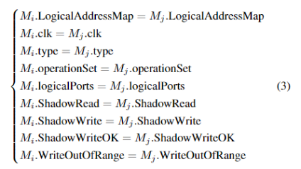 在分组过程中,首先要面对多约束问题。多约束指的是在分组过程中需要同时考虑各种因素或限制。如上述所示,我们选择了通常最重要的一些约束,(1)和(2)是功率约束和距离约束,(3)中的这些特性是必须满足的,如逻辑地址映射约束、时钟约束、类型约束、逻辑端口约束和写越界约束等。只有满足所有限制条件的存储器才能被分为一组,而且最终分组数量越少越好。