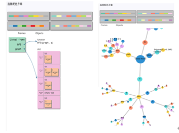 图5所示为学生编程调试行为与代码相似度分析界面,点击气泡图中某位学生的气泡可以查看其具体的编程信息数据,选择某个编程题目对学生编程行为和代码相似度进行联合分析,帮助教师了解具体学生编程能力,进行分类教学管理。图6展示了学生作业代码调试过程中的内存状态,结合堆叠图中的堆栈情况进行比较分析。