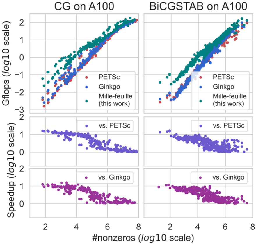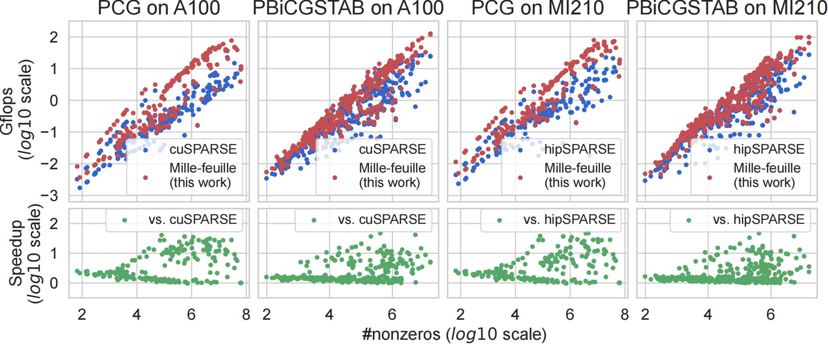 一、Mille-feuille与基准实现的对比(cuSPARSE/hipSPARSE)