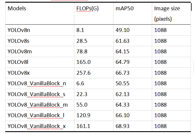 表2 YOLOv8_VanillaBlock与YOLOv8准确率及计算量对比
