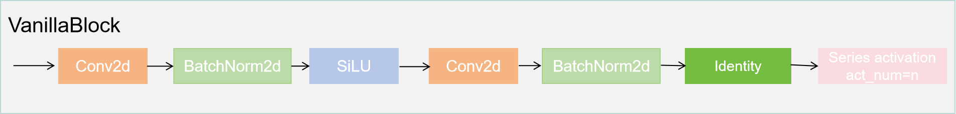 我们借鉴Vanillanet的思想设计出了VanillaBlock。图1展示了我们所设计的VanillaBlock的结构,其由两个卷积层和两个池化层组成,中间有一个激活函数。VanillaBlock模块的最后一个组成部分是由n个激活函数组成的序列激活函数。