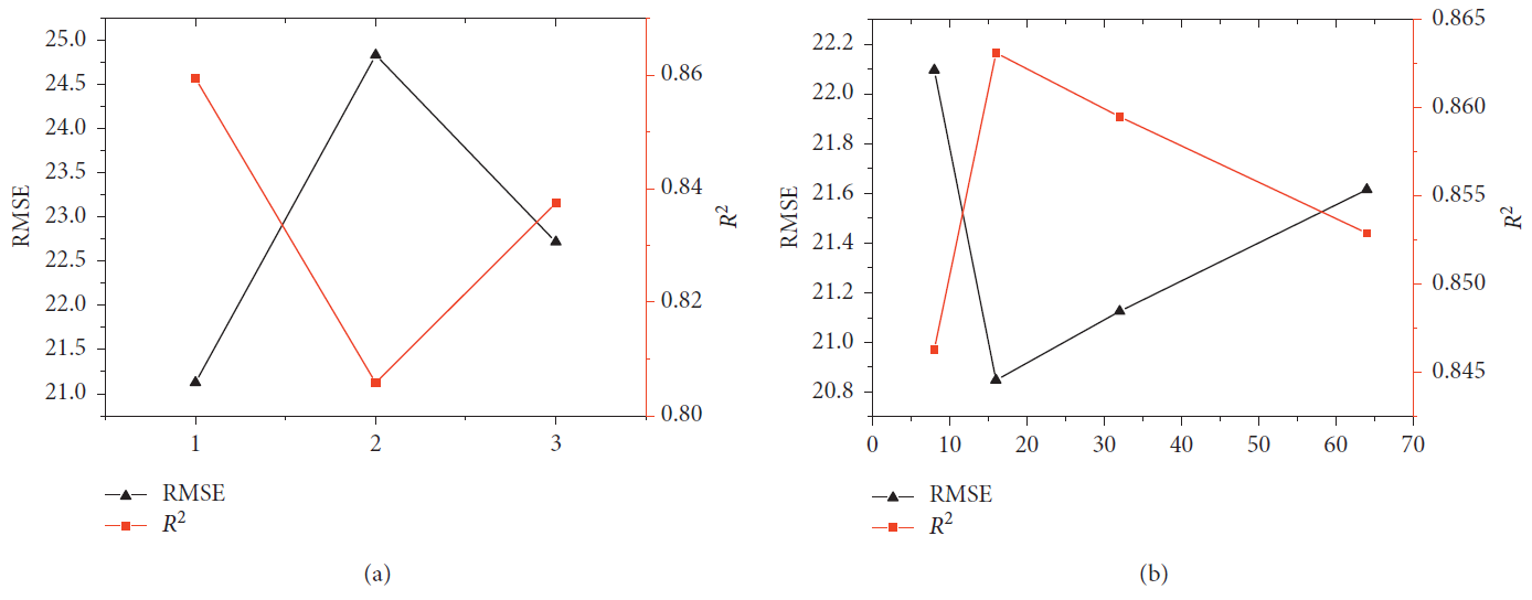 图3 LSTM超参数优化过程((a) 隐藏层节点数;(b) batch-size大小)