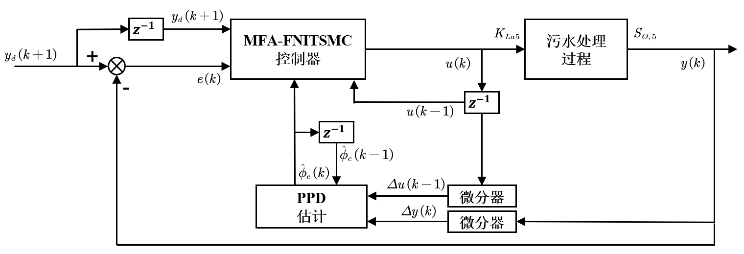 基于MFA-NFITSMC控制方法的污水处理厂控制系统框图如图所示: