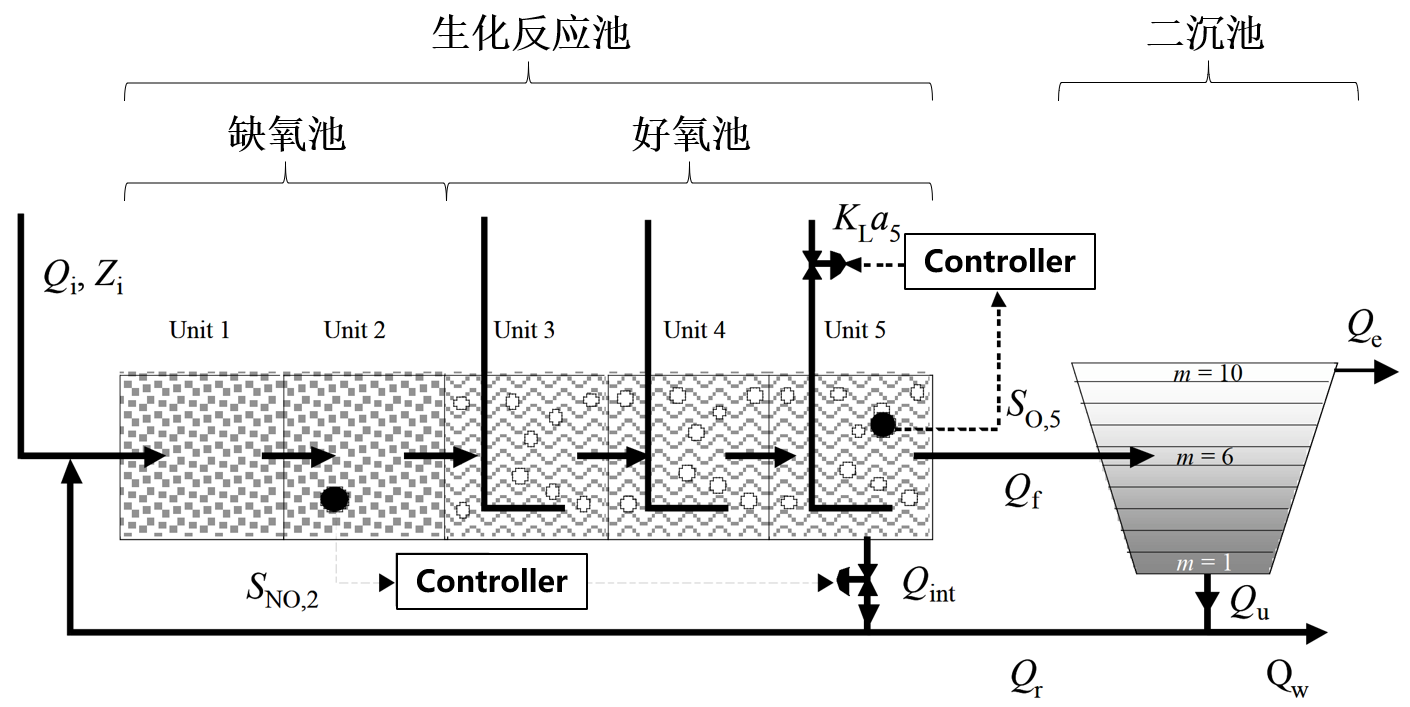 随着经济快速发展及城市工业化进程的推进,工业污水和生活废水的排放日益加剧,水污染引起的可用水短缺和日益增长的用水需求,严重加剧了水的供需矛盾,已成为全世界面临的共同难题。污水处理厂是一种广泛应用于石油化工、居民生活等领域的工业系统,其能够减少水污染,促进废水循环利用,大大降低了工业用水需求,避免了环境污染。然而,污水处理厂是一个非常复杂的时变动态系统,其内部的反应过程受到进水流量、污染物负荷以及未知进水组分的影响,呈现出非线性、强耦合和强扰动等特点。因此,针对污水处理厂的控制研究对于改善运行性能、提高出水水质具有重要意义。