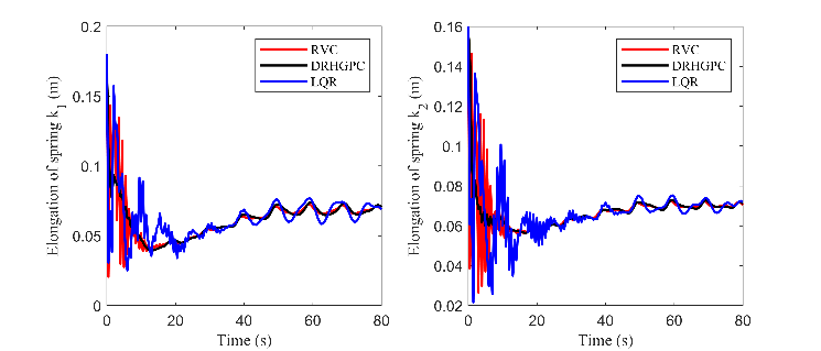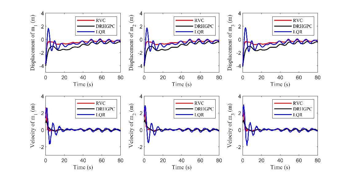 图1 RVC与DRHGPC、LQR控制下的立管反冲的位移与速度