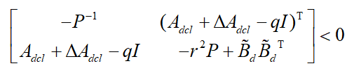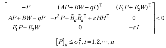 随后,使用极点配置技术将闭环系统的极点约束在复平面的指定区域D(q,r)内,以获得理想的动态响应。同时,基于方差约束理论,通过求解线性矩阵不等式(LMI)获得闭环系统的状态反馈增益,从而实现稳态方差的约束,确保系统的稳态性能符合要求。所设计的LMI如下所示