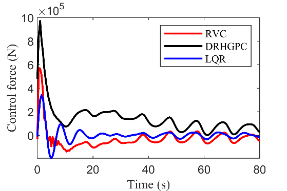 图2 RVC与DRHGPC、LQR控制下的立管反冲的控制力U