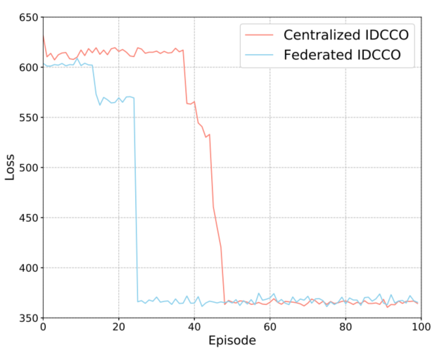 图3 Fed-IDCCO和集中式IDCCO之间的损失函数