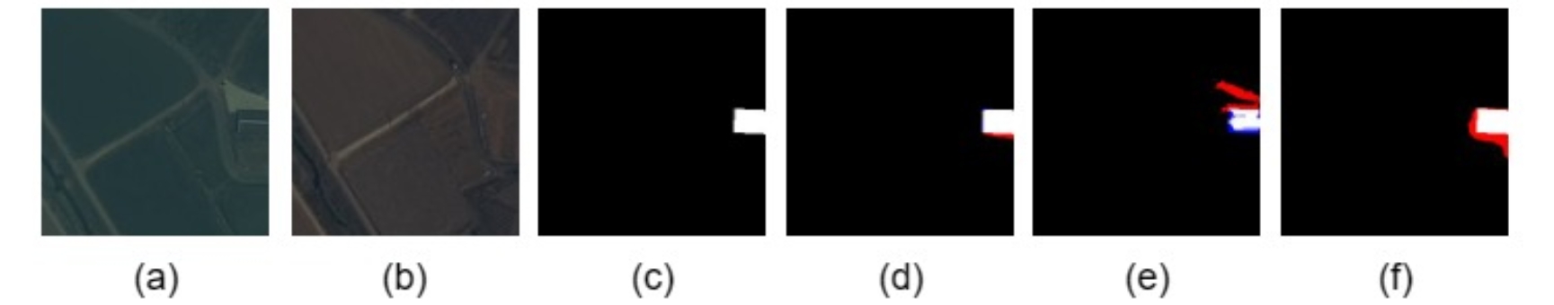 我们提出了一种基于多约束和损失权重的变化检测模型,在BCDD、LEVIR-CD、DSIFN和S2Looking数据集上实现最优的精度、收敛速度和稳定性。更准确地说,我们的模型在这些数据集上的F1和IoU得分分别提高了7.54/11.89、2.35/3.84、0.40/0.45和15.37/14.39分,在指标上有显著的提升。相似性约束指导深层特征的背景一致性,并抑制不感兴趣的变化,例如由位置和照明等环境因素引起的变化。边界互补信息约束增强了模型对感兴趣目标周围不确定性强的位置的关注,抑制了边缘噪声。此外,自适应对偶损失模块自动更新边界互补信息损失中的类权重,缓解类不平衡。CDMC通过分析统计结果和可视化结果,确实减少了误报样本的数量,抑制了边缘噪声,这是实现显著提升的主要原因。
