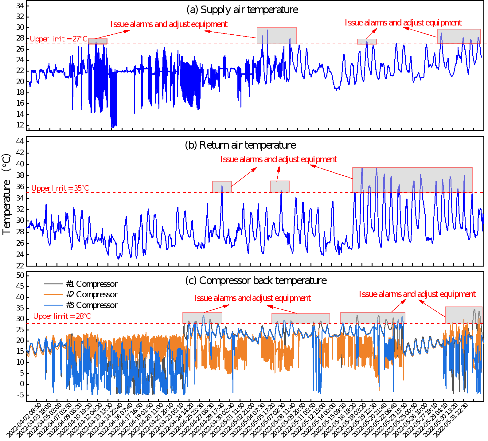 传统的数据中心冷却系统能耗管理(ECM)方法缺乏对实时信息和自动反馈控制的集成,导致系统运行风险难以诊断,节能潜力难以挖掘。因此,提出了一种数字孪生驱动的冷却系统能耗管理方法。首先,建立了分层数字孪生架构,以指导物理系统与数字孪生之间的无缝集成和实时交互;其次,开发了监测、仿真、能耗评估与优化等数字孪生模型,以驱动相应的数字孪生服务;最后,在某数据中心的集成热管冷却(IHPC)系统中对该方法进行了验证。结果表明,在满足冷却需求的前提下,该方法降低了系统23.63%的能耗。