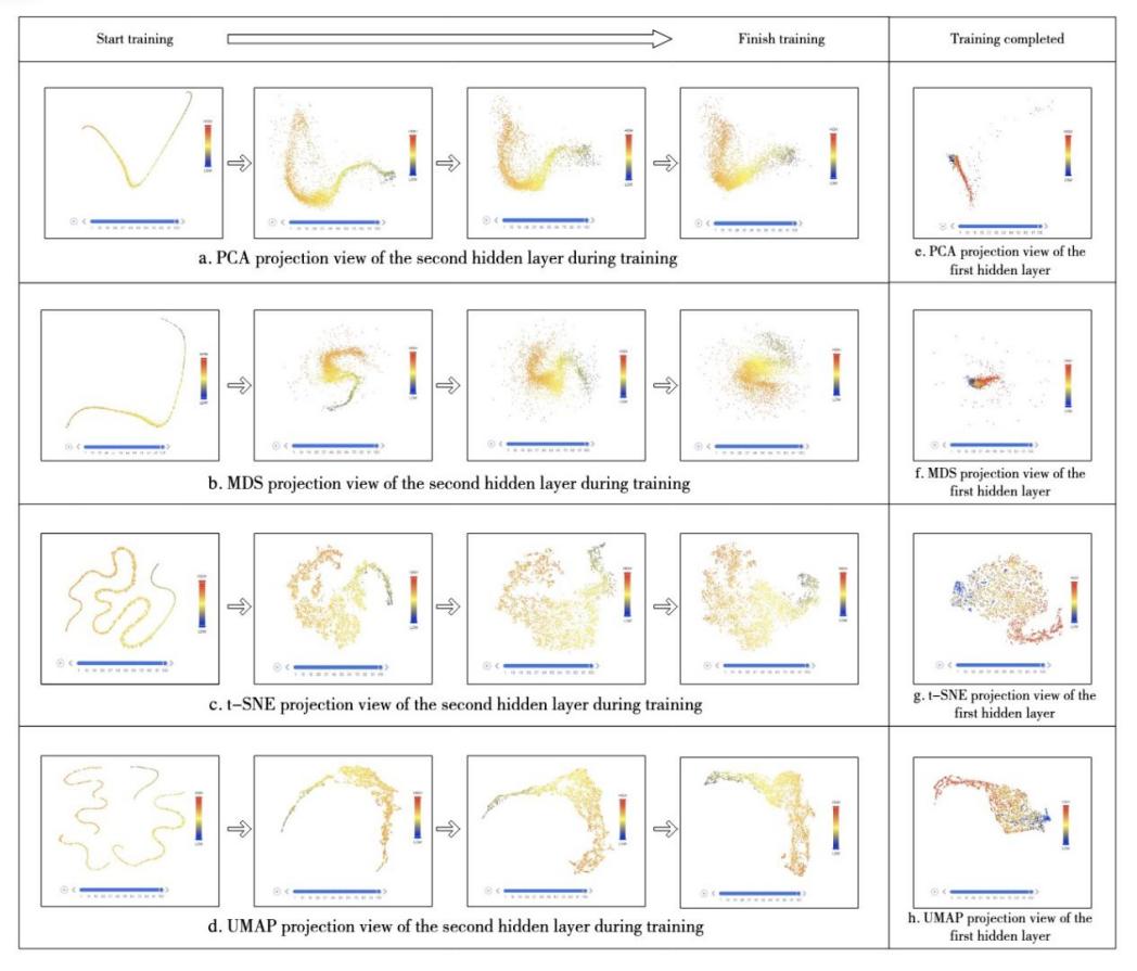 面向五种典型LSTM可视分析任务场景,文中通过多组对照实验定性和定量比较了四种DR技术的表现性能和效果。