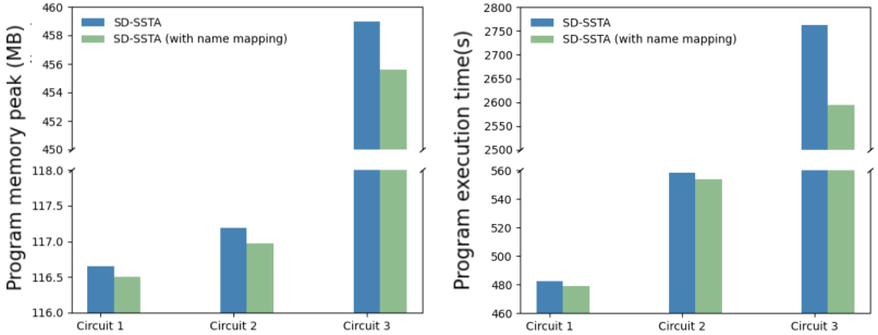 本文提出了一种基于非高斯分布的SSTA方法SD-SSTA。不同于传统的SSTA算法,我们利用GMM模型对非高斯分布进行建模,并在高斯分布的基础上引入偏度系数。非高斯分布用µ,σ和偏度系数表示,即非高斯分布被参数化。利用这些参数,准确地计算了到达时间的前向传播。在时间宽裕量的计算中,考虑了偏斜的影响,并在公式中引入了SAF。与传统的SSTA结果相比,SD-SSTA算法显著提高了时间宽裕量计算的准确度。此外,通过名称映射有效地减少了内存和时间,提高了算法的性能。
