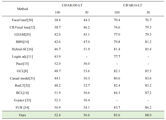 表1 对不同不平衡因素下CIFAR10/100-LTtop-1测试精度(%)进行基准测试