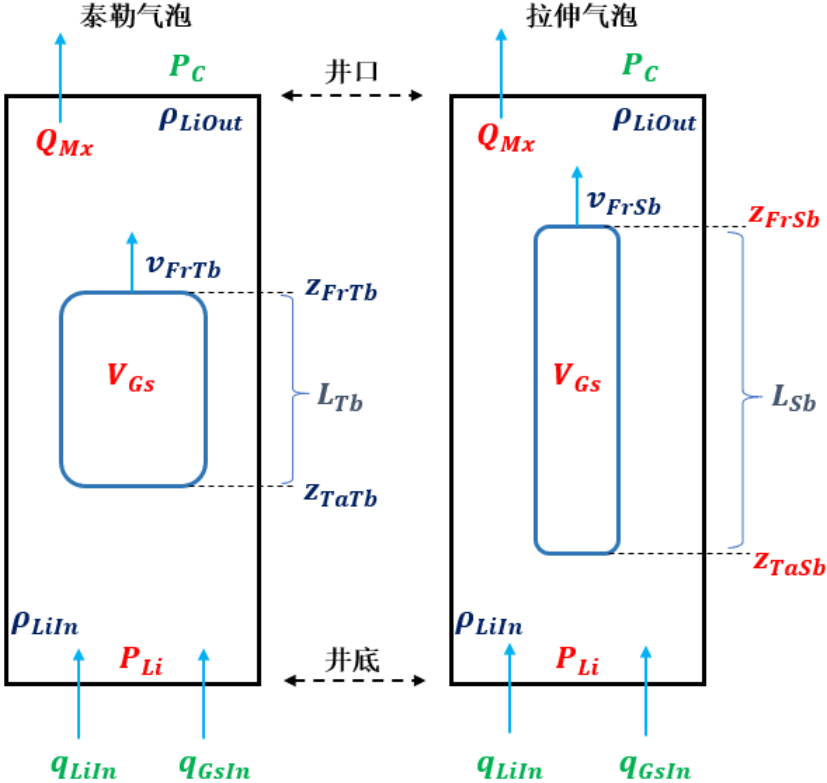 为模拟侵入井筒内气体的运动,将整个井筒看作一个固定边界的控制体积(Control Volume, CV),且CV中仅包含一个气泡,气泡的描述采用“双形”气泡表示方法。