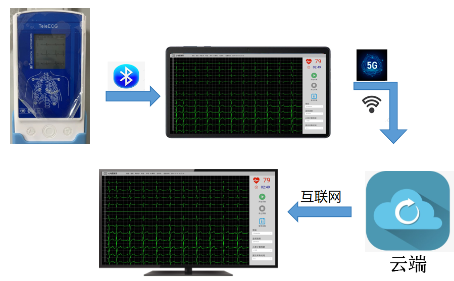 5.便携式远程智慧心电监测仪;采用5G技术、物联网技术、人工智能算法,实现患者在各种不同场景下的便携式快速心电监测、医生远程会诊、人工智能辅助诊断。