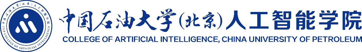 人工智能学院院徽由外环和内部标志组成,外环为中英文校名、院名,内部标志为字母“AI”和石油“油滴”组合成的等边三角形。
