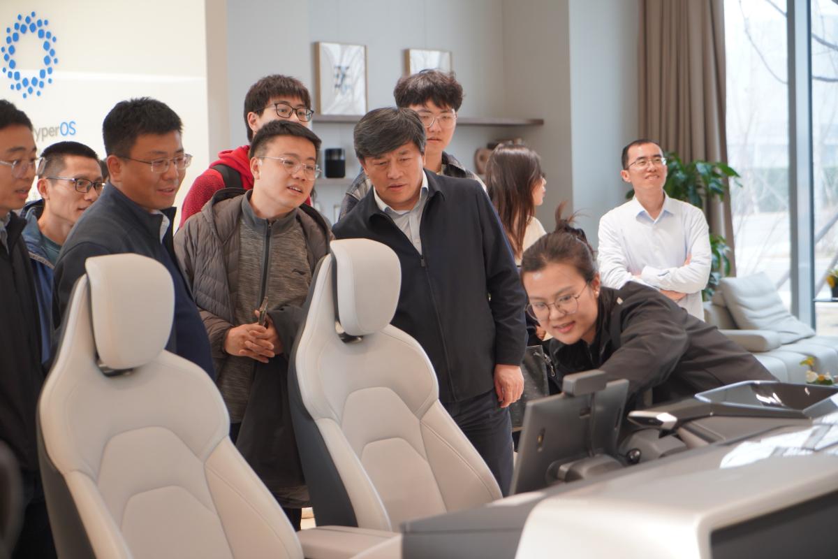 师生党员还深入小米汽车生产车间,实地参观了压铸、冲压、车身等生成流程,小米自研的超级大压铸流水线系统、运输物料的AMR机器人、智能质检系统、自动装配的机械臂等智能化设备的广泛运用,给大家留下深刻印象。最后部分师生参与了小米SU7试乘,亲身体验了小米SU7的卓越性能和舒适驾乘体验。
