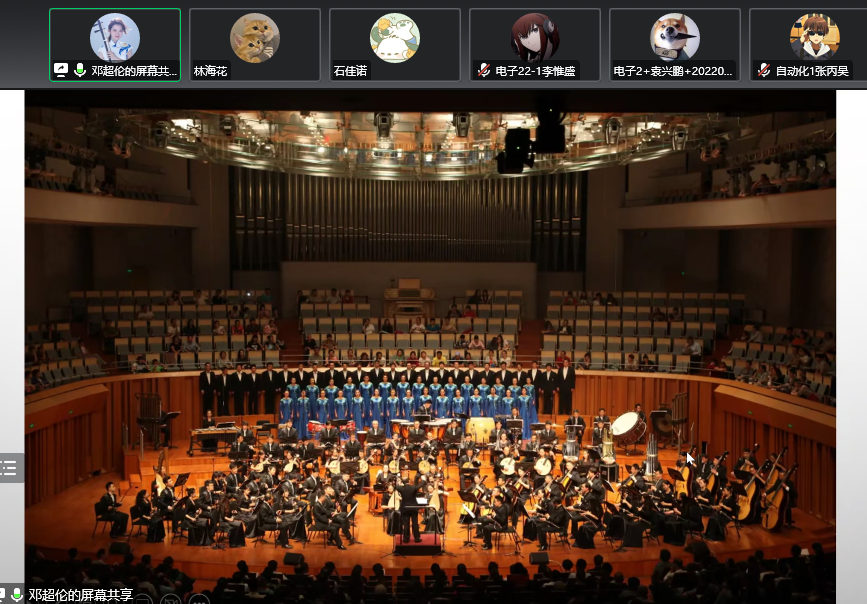 本次讲座从中国民族管弦乐是什么开始,讲述其发源;通过视听结合的形式,介绍了管弦乐团中所包含的乐器;最后以一曲赞美教育事业、广大劳动人民以及伟大祖国伟大党的《春华秋实》,带领同学们领略了中国民族管弦乐的恢弘气势以及协调的智慧。讲座过后同学们纷纷表示被乐曲的气势所震撼,也加深了对中华传统文化的了解。