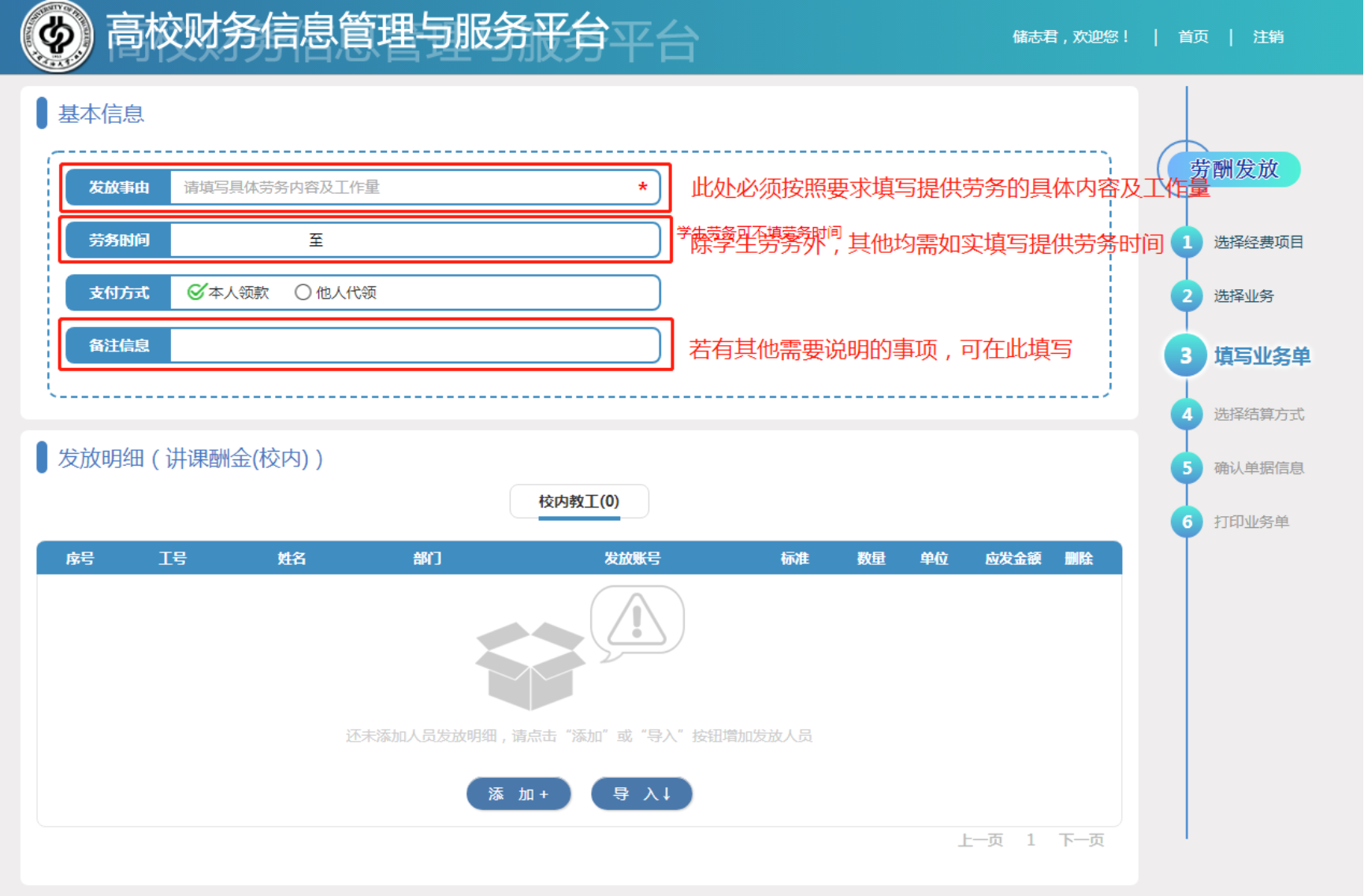 3、向校外人员发放其他劳务费时仍需提供劳务领取人的单位、职称等信息。