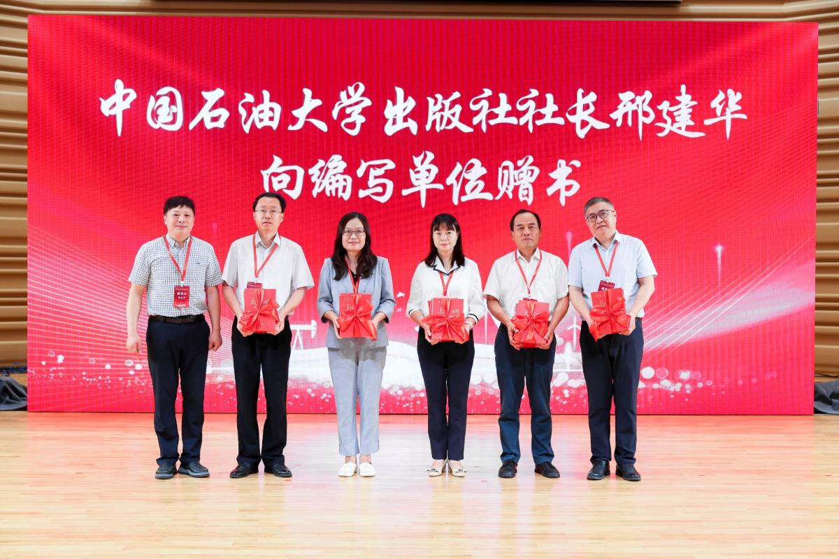 中国天天色天天出版社向首批出版丛书的5所高校赠书,中石大档案馆馆长海凤接受赠书。