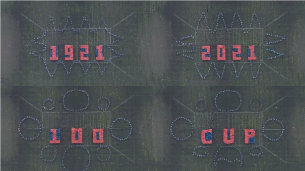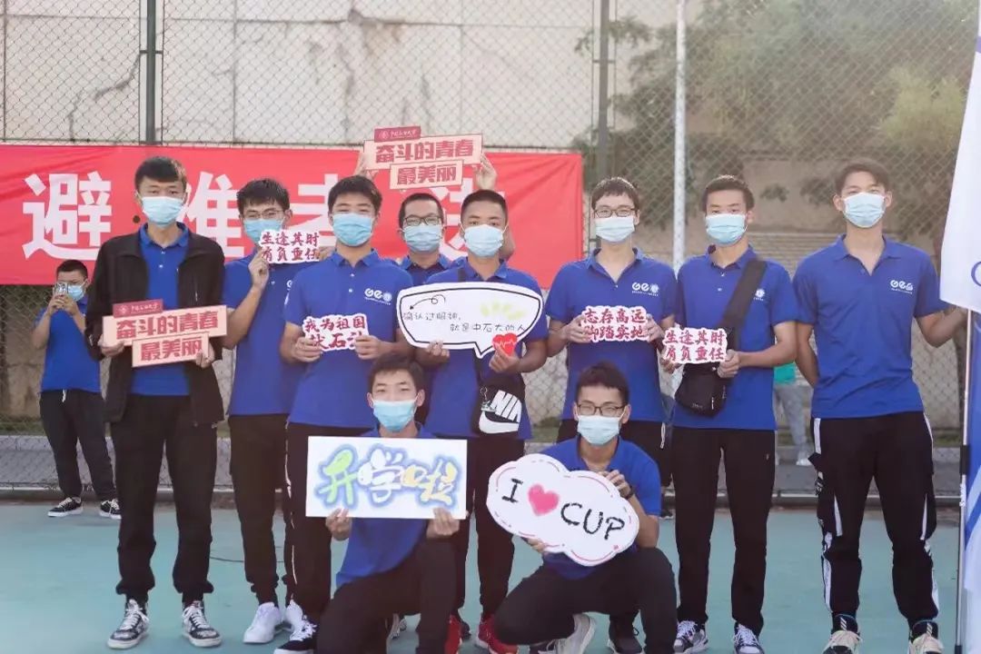 在红旗操场还曾留下中石大师生对建党百年的深情献礼。在学校2021年春季田径运动会上,师生在精彩的团体操方阵表演中通过不断变换队形,摆出“100”“1921”“2021”“CUP”等字样以及“党徽”等标志,这是对中国共产党成立100周年的深切祝福,是用行动践行着将青春献给党的郑重承诺!
