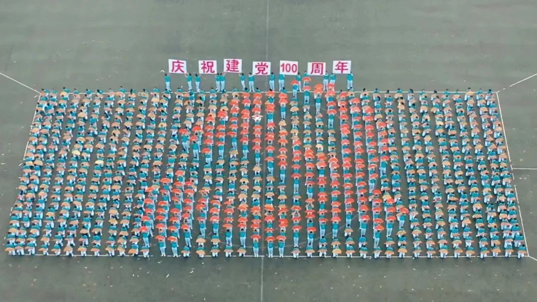 2021年春季田径运动会上,师生为建党百年准备的团体操方阵表演