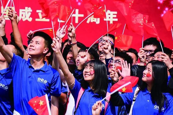 在青年园南广场举行的庆祝新中国成立70周年快闪活动