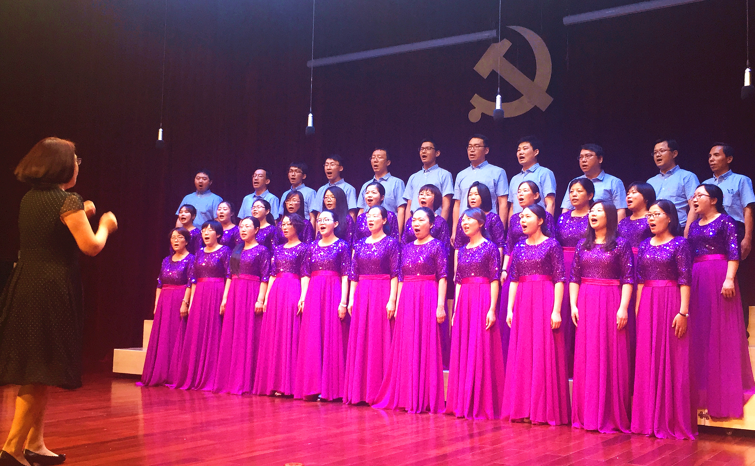 外国语学院工会一个月前就开会讨论了此次庆七一合唱的演唱曲目、形式、训练安排等事宜,积极号召教职工参加,并且组织了十次排练。在外国语学院党委和行政领导的支持下,谢丽娟老师孜孜不倦地指导,三十多位老师在繁重的教学任务间隙集合在一起愉快地排练、彩排和正式演出。本次合唱展演为学院提供了展现风采的舞台,增强了教职工的爱国情怀,激励了教职工继承和发扬党的光荣传统,立足本职岗位做贡献。