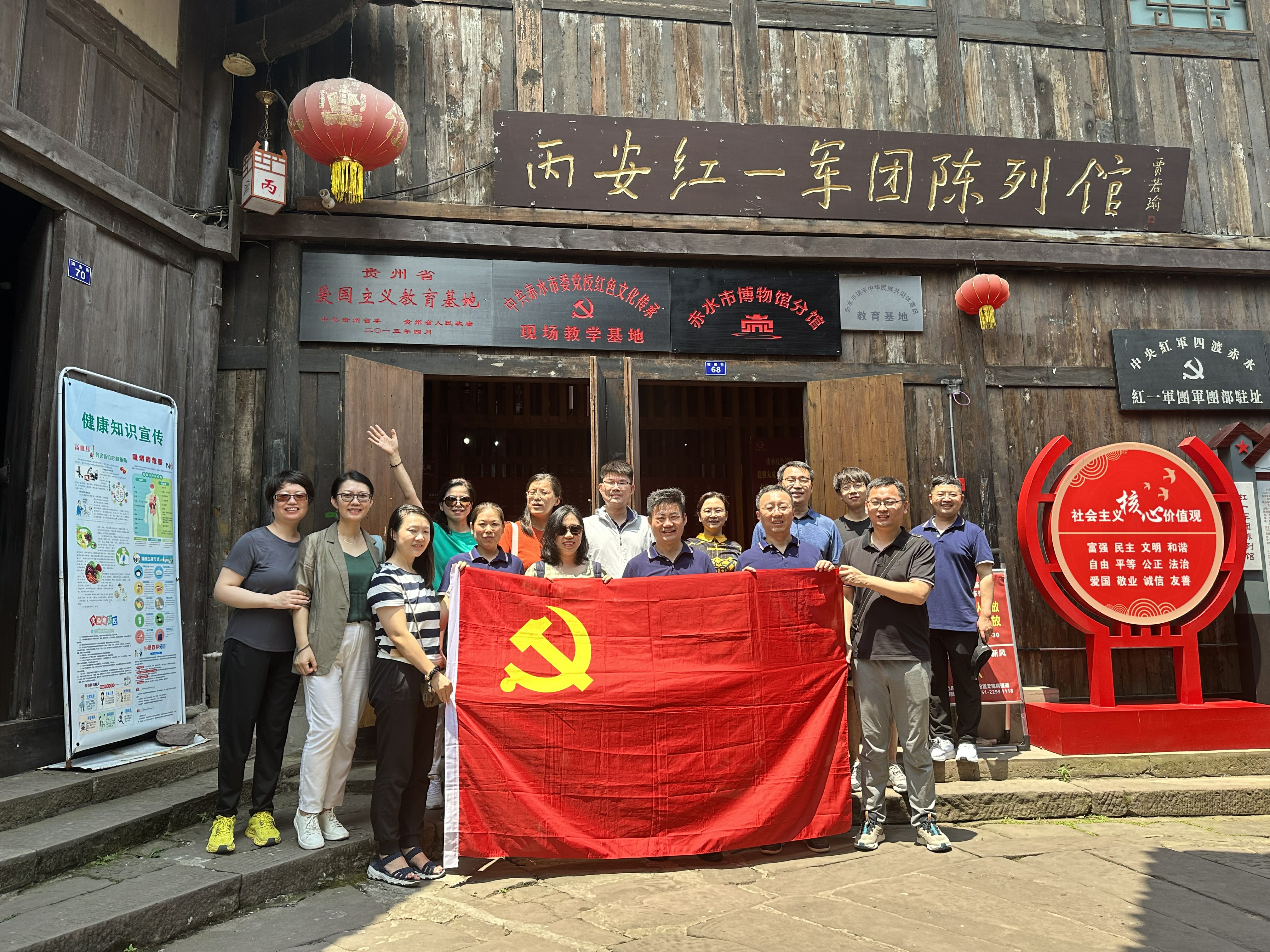 在茅台镇、丙安,赤水河边,教工党员共同学习“四渡赤水、出奇制胜”的战争史,感受毛主席军事指挥战略上的“神”,缅怀老一辈无产阶级革命家的丰功伟绩。
