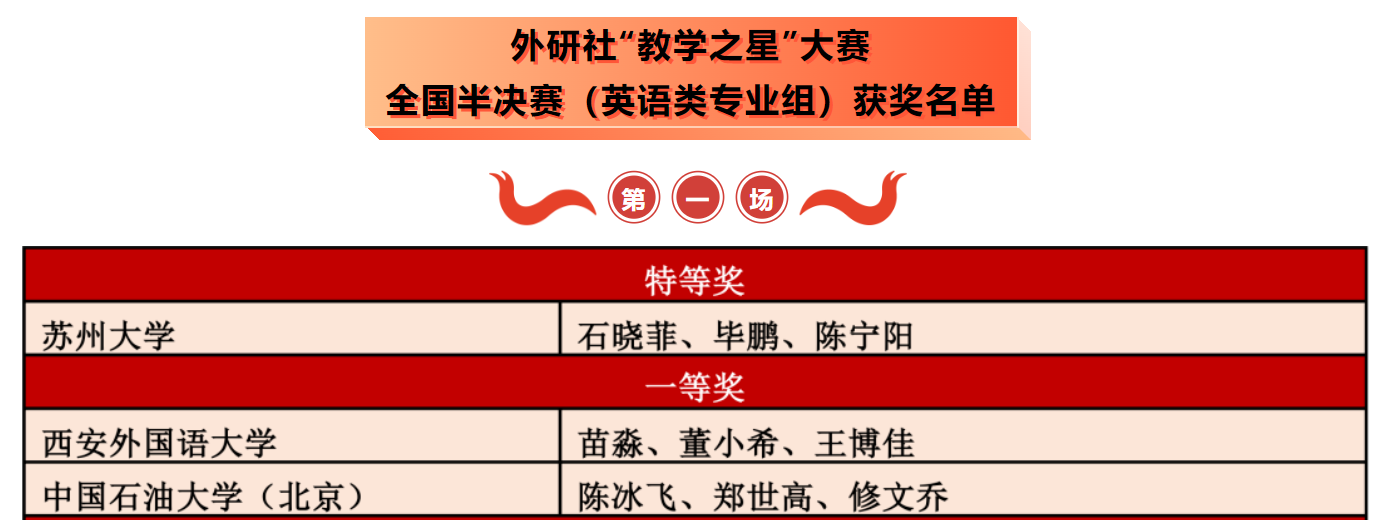 全国半决赛(英语类专业组)共有24组参赛团队,分三个赛场进行角逐。经过教学设计介绍、课堂教学展示、现场问答三个环节的激烈比拼,我校《思辨英语读写》课程团队表现突出,最终荣获一等奖。