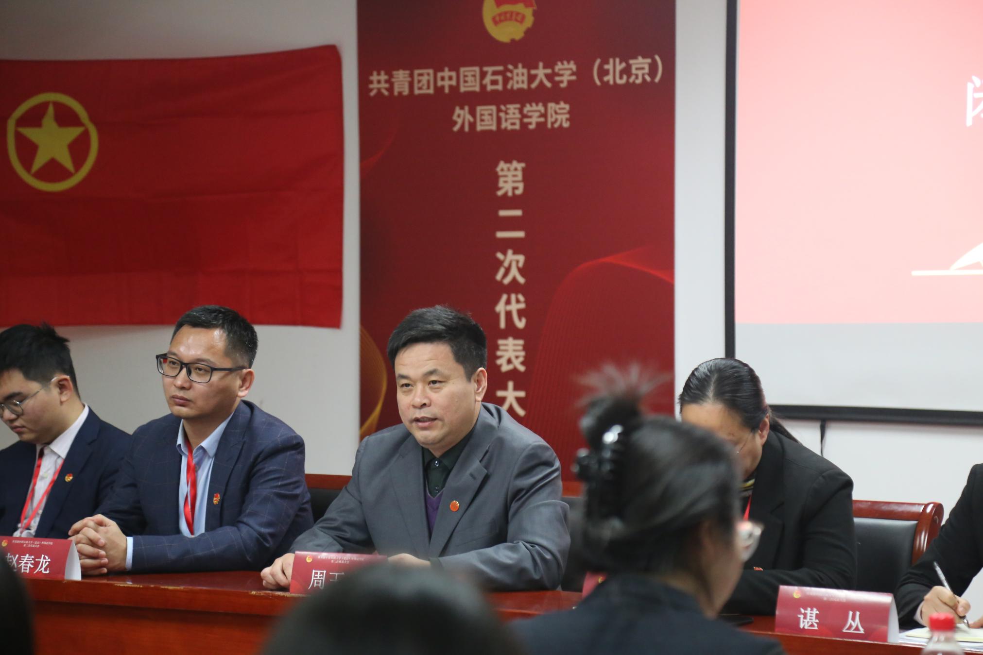 周学智代表校团委对学院团委取得的一系列成绩表示肯定,他表示,外国语学院团委积极适应高等教育综合改革新发展、共青团深化改革新形势和青年学生新特点,探索构建符合时代特征、彰显石大特色、展示外语风采、符合青年成长规律、满足青年发展诉求的工作载体,提升大学生文化自信,发挥语言优势讲好中国故事,形成了具有鲜明时代特征、青年特点和学院特色的团的工作格局。