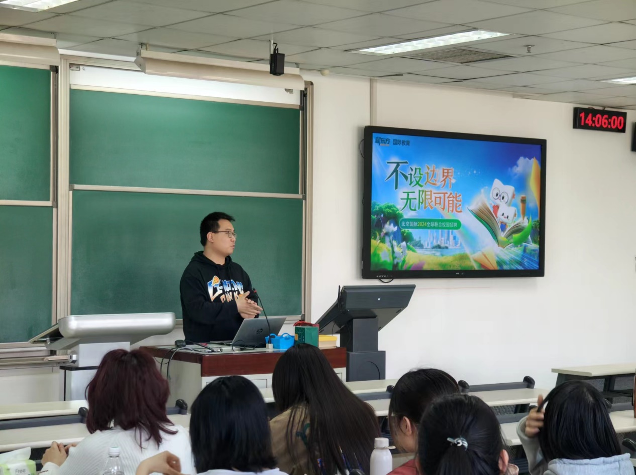会上,北京市新东方培训学校有限公司的武老师以“不设边界 无限可能”为主题,从公司的创立、发展以及福利待遇等方面介绍了公司的基本情况,并对公司的工作岗位、培养方式、招收计划等内容进行详细讲解,使同学们对北京市新东方培训学校有限公司有了全面的了解。