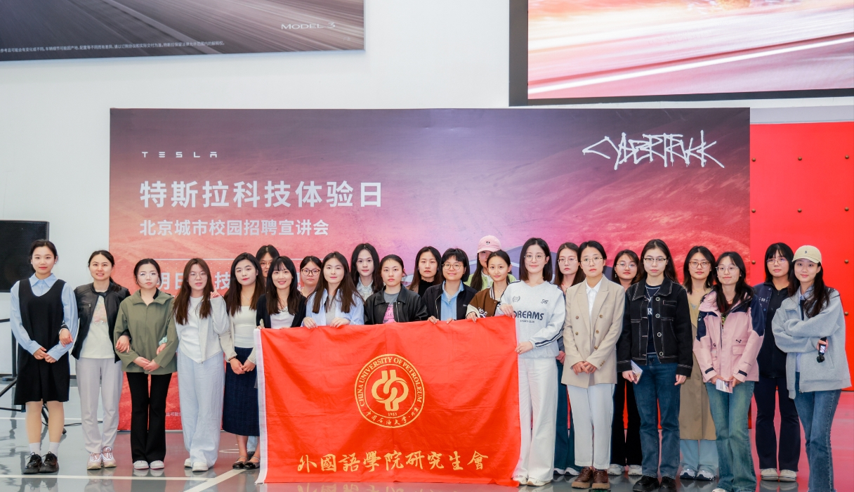 4月24日,外国语学院开展“卓越企航”实践活动,学院研究生辅导员谌丛带领学院研究生赴特斯拉2025科技体验日北京城市专场活动学习交流。