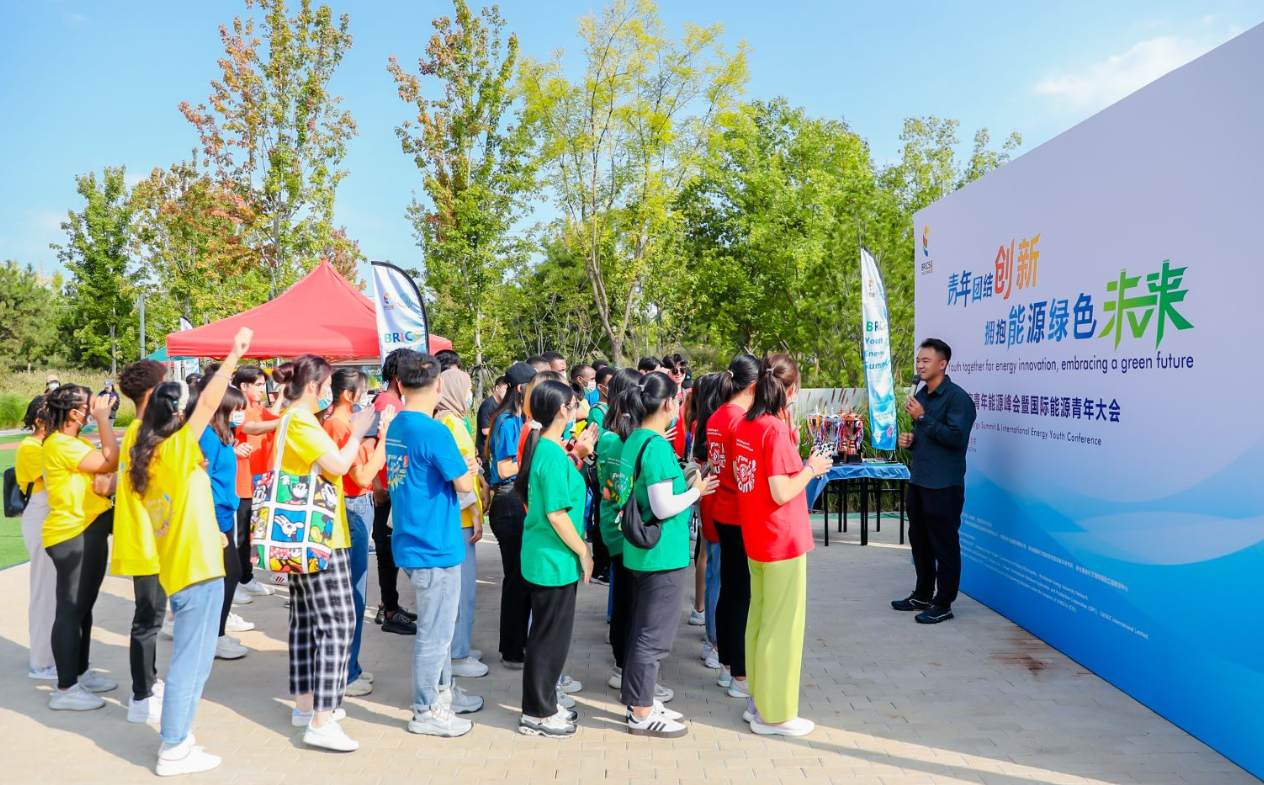 In conjunction with the BRICS Youth Energy Summit and International Energy Youth Conference, over 60 young people from China and abroad gathered at the Wenyu River Park in Beijing on 18 September to participate in a special outdoor event called "Embrace the Future". The teams, dressed in the five colors of BRICS, worked together with the goal of protecting the environment and reducing carbon emissions, and overcame obstacles to find solutions for a green future, demonstrating the spirit of solidarity, cooperation and innovation. Prior to the event, young people from different countries shared a cake with the theme of "BRICS Youth solidarity and innovation".