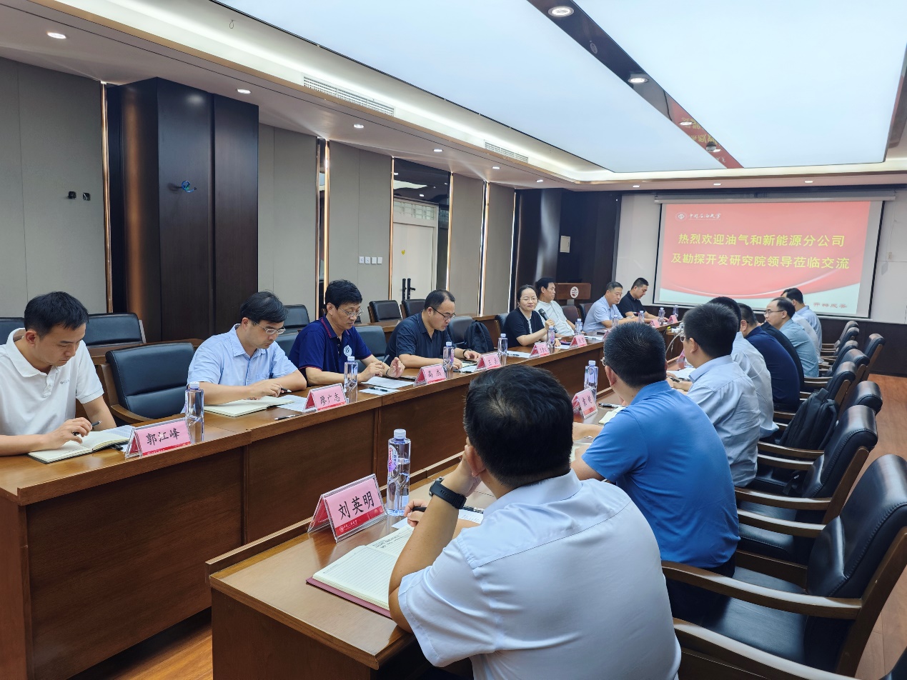 8月25日,中石油油气和新能源分公司副总经理杨雨一行来访我院,中石油勘探开发研究院油气地球物理所书记王铜山、中石油勘探开发研究院测井研究所所长武宏亮、地球科学学院院长王贵文、地球物理学院党委书记王兵、院长饶莹、副院长唐跟阳、物探和测井系主任及学院教师代表参与此次地球物理技术发展交流会,会议在地质楼204召开。