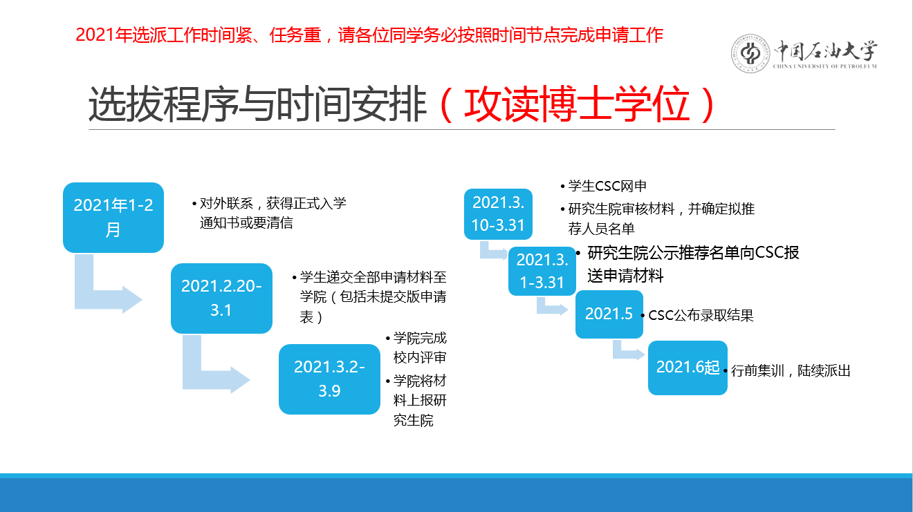 (2) 2021年3月18日-3月31日:研究生院汇总审核,报送国家留学基金委。