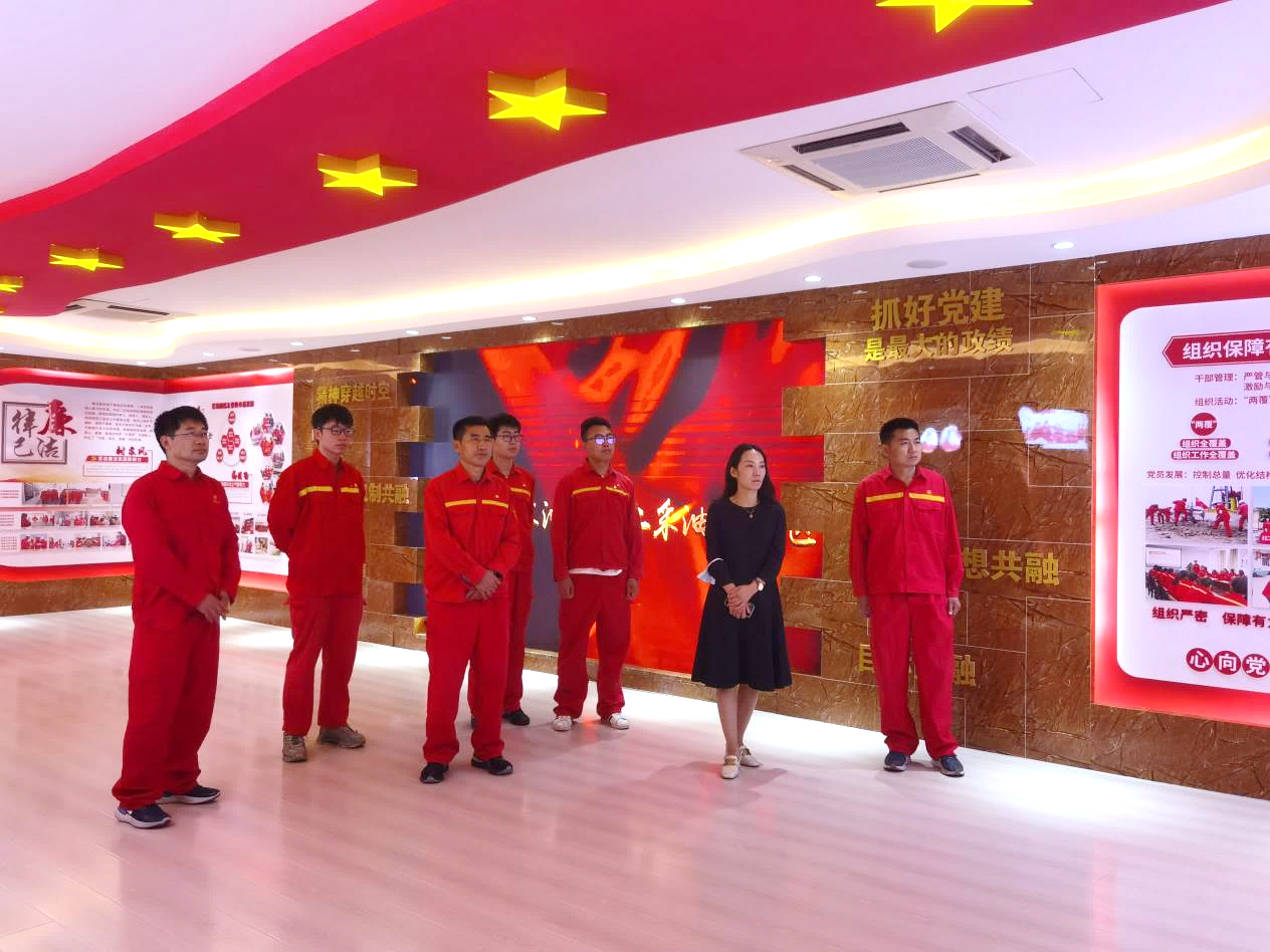 第一站来到中国石油“基层党建百面红旗单位”、天津市“工人先锋号”——大港油田第一采油厂第二作业区现场调研学习并在中国石油企业精神教育基地“党建红旗展室”参观学习。第一采油厂作业二区党支部积极践行“奉献石油、创造和谐”的企业宗旨,大力弘扬石油精神和大庆精神铁人精神,融合创新、探索打造了“红旗不倒、永葆鲜艳”的特色红旗文化,并创建了特色党建阵地——“红旗展室”。在讲解员的带领下,地学院一行师生参观了红旗展室,学习了作业二区的红旗文化与先进基层党建经验。