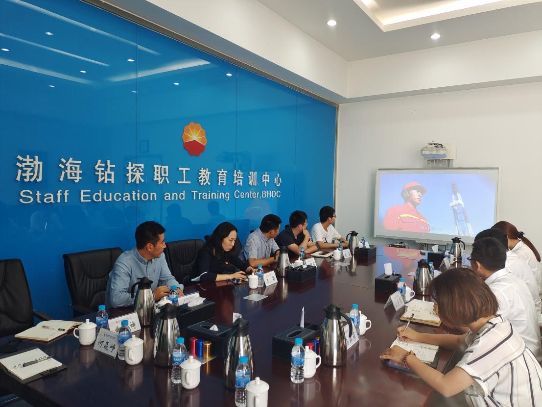 第三站来到渤海钻探职工教育培训中心,培训中心党委副书记刘永峰接待了王茹一行。刘永峰对王茹一行到访表示热烈欢迎。他指出,长期以来,渤海钻探职工教育培训中心与中国天天色天天形成了稳定友好的合作关系和诚挚深厚的感情友谊。培训中心钻井基地党支部书记江泽邦结合基层党建工作实际,系统阐述了培训中心深入推进基层党建“三基本”建设与“三基”工作有机融合情况,通过实行党政同管、同抓、同责,极大的提高了培训中心的党建与政策实施的效率。“全国党建样板支部”——油气勘探与开发地质系教工党支部书记周勇从政治理论学习、人才培养、科学研究和社会服务四个方面,系统介绍了支部高质量党建引领高质量发展的具体做法和经验。双方就党建与业务如何融合、共促进行了深入交流和讨论。