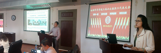 院长曾溅辉教授作学院工作报告校工会副主席孔繁青在大会发言