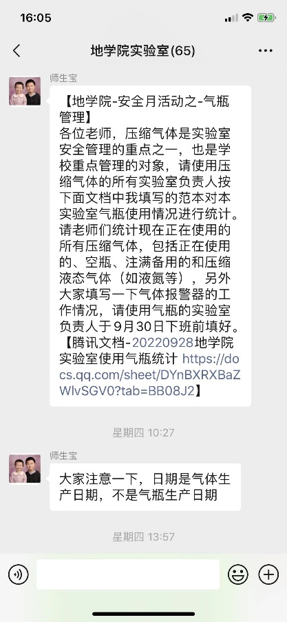 1、新学期应学校安全管理办公室要求,每周对实验室进行一次安全检查,并将检查问题及整改落实情况上报学校;