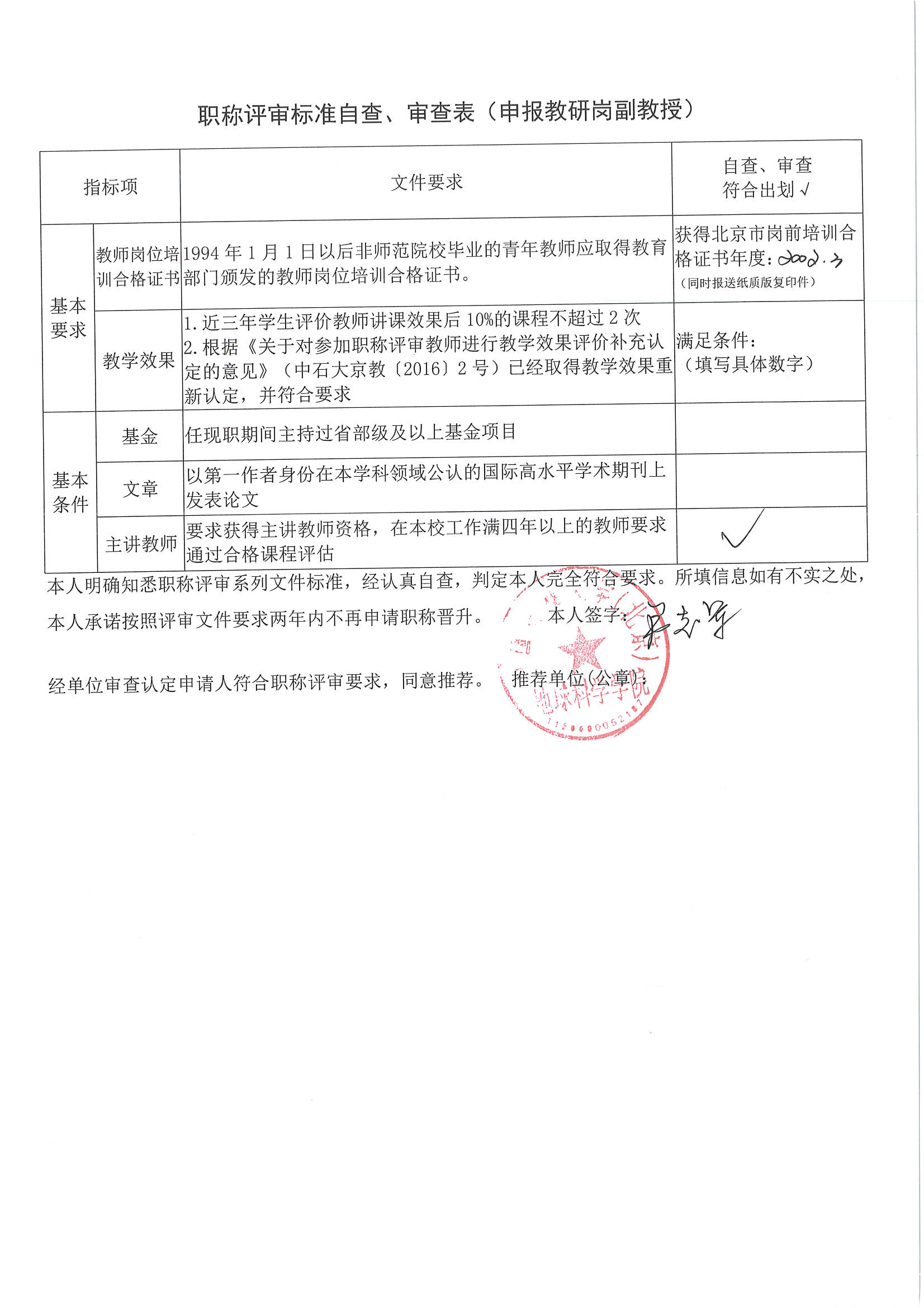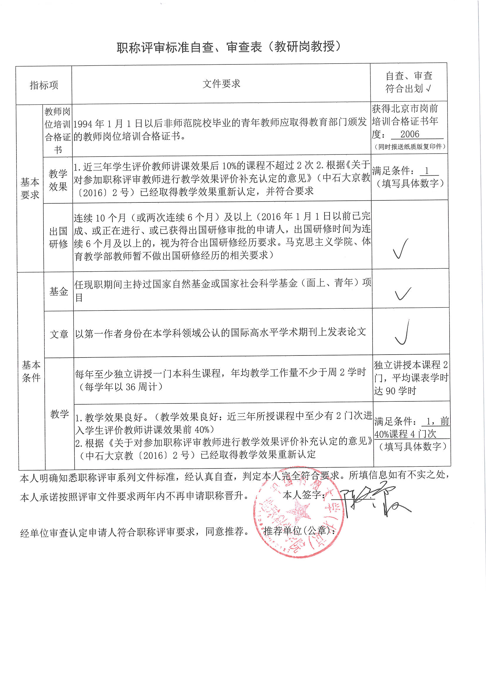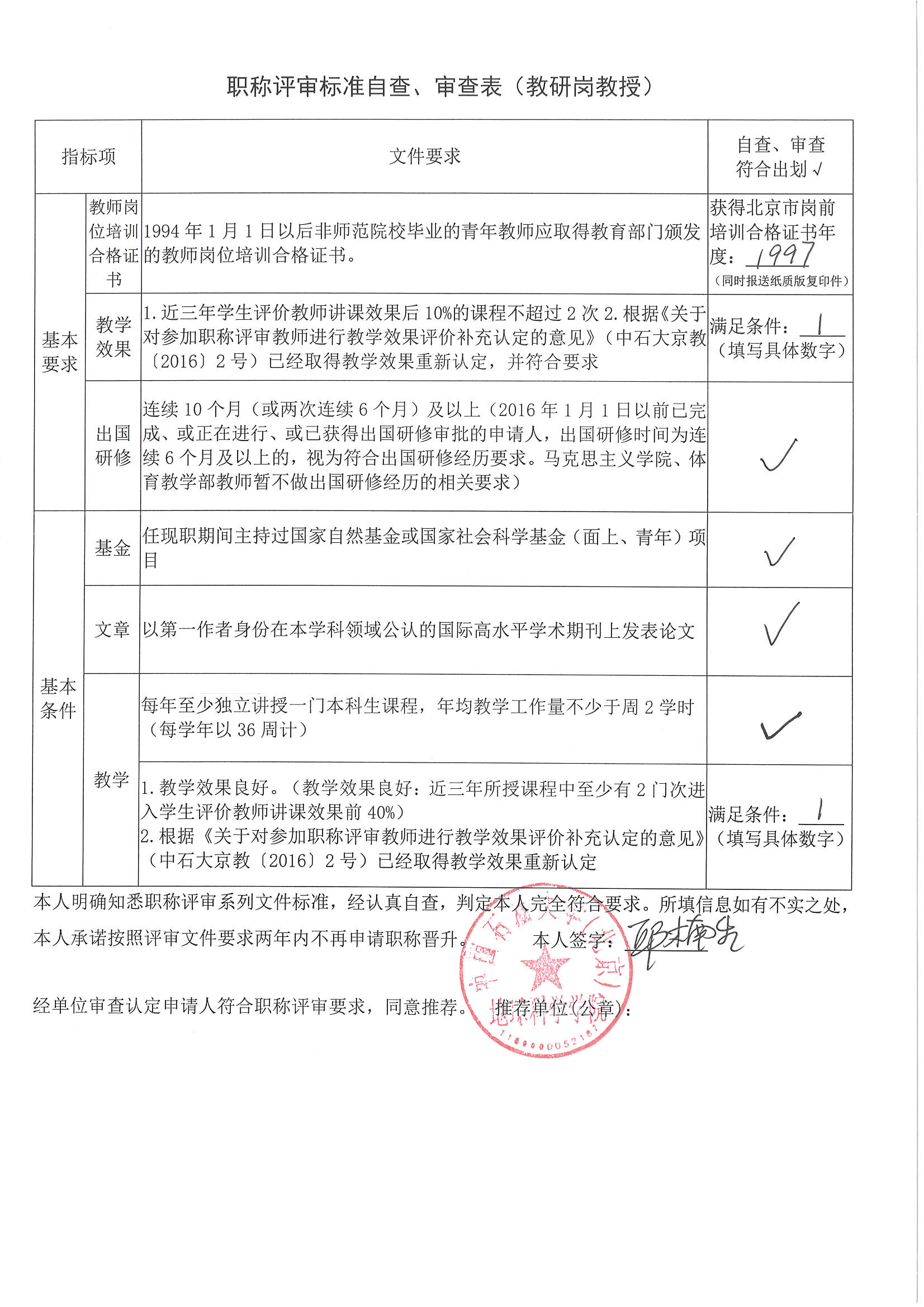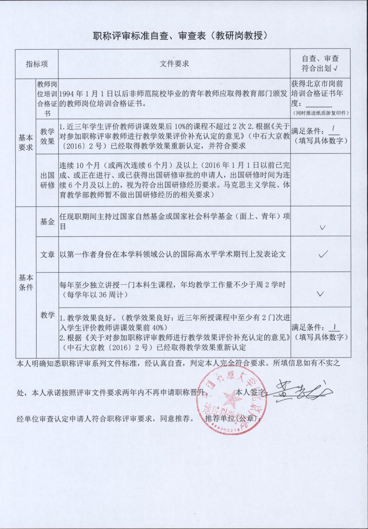 根据《中国天天色天天(北京)关于2018年度专业技术职务评审工作的通知》的要求,学院现对我院申报高级专业技术职务平转人员材料进行审查,并将申报人员“申报高级专业技术职务任职资格基本简况表”、“职称评审标准自查、审查表”进行公示,公示期自2018年5月25日—5月31日,共计7天,有异议者请于公示期内联系地球科学学院院办。