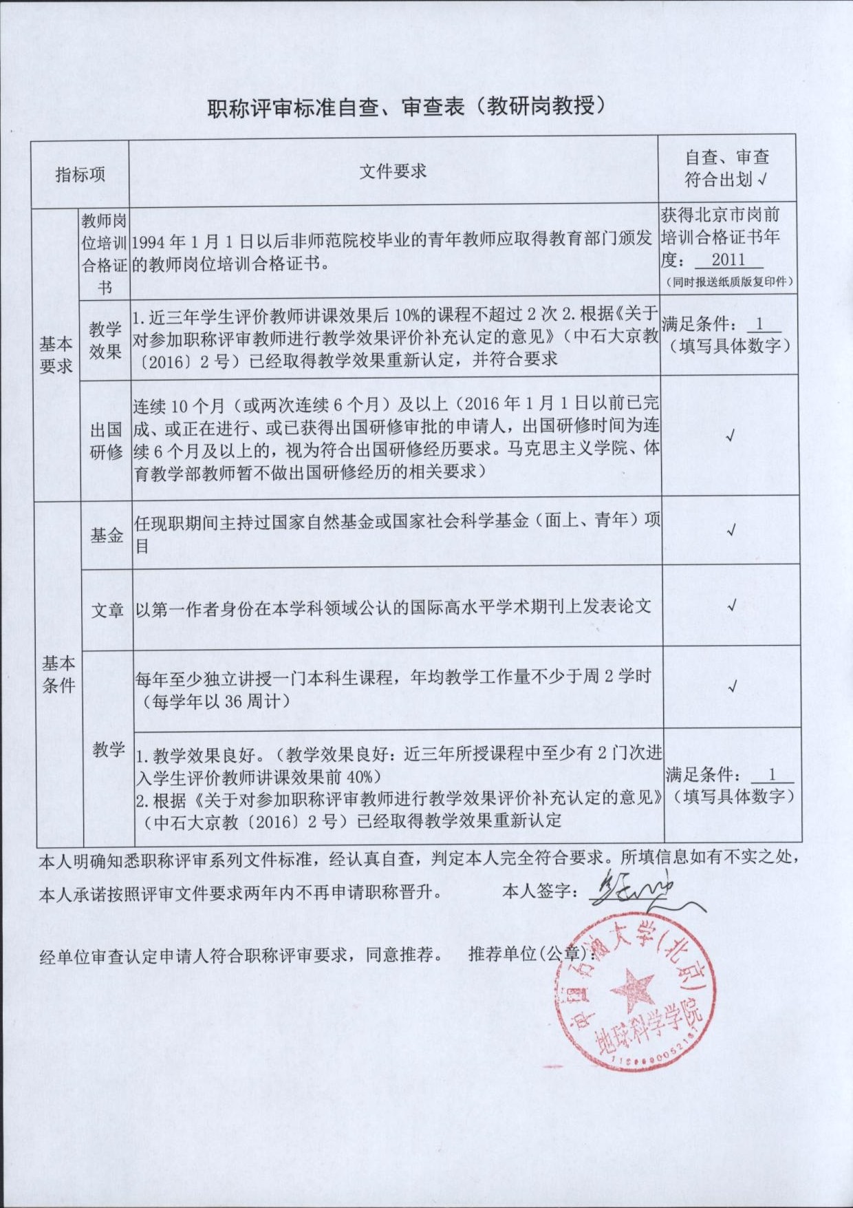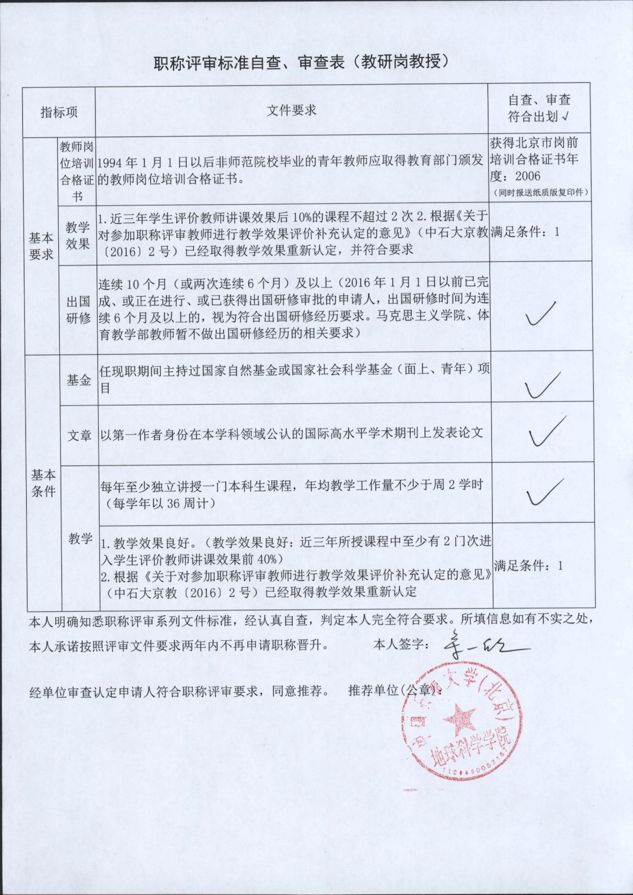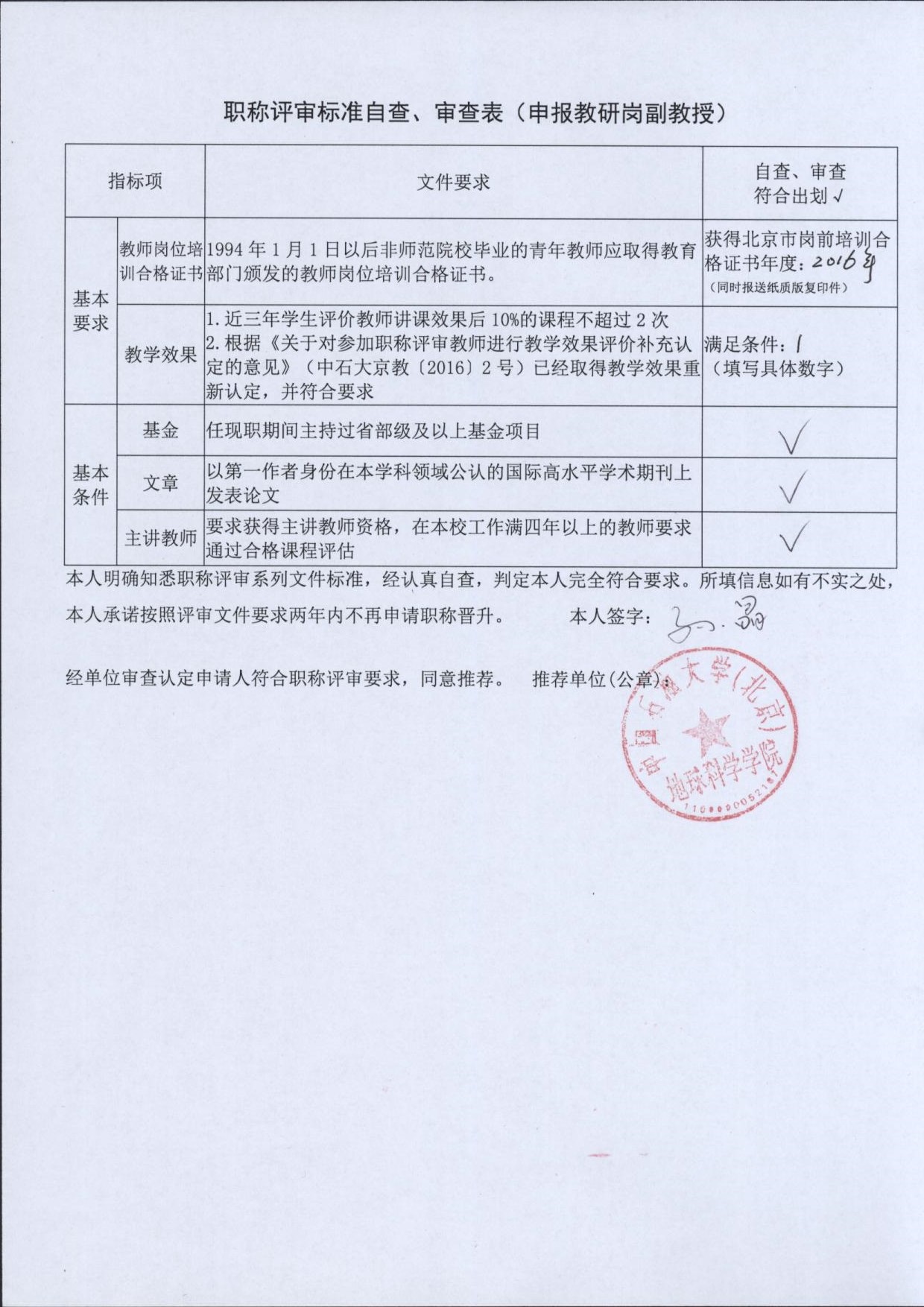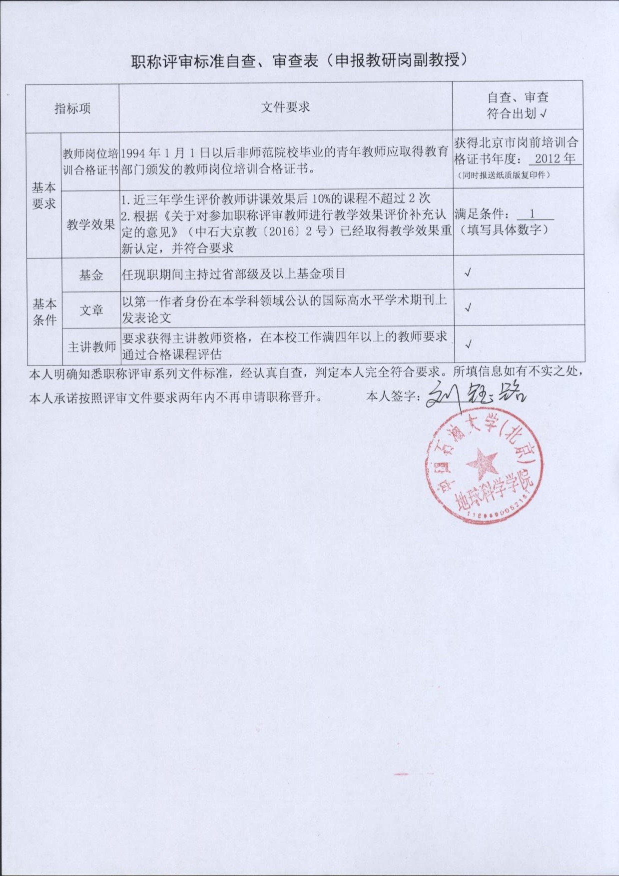 根据《中国天天色天天(北京)关于2018年度专业技术职务评审工作的通知》的要求,学院现对我院申报高级专业技术职务人员材料进行审查,并将申报人员“申报高级专业技术职务任职资格基本简况表”、“职称评审标准自查、审查表”进行公示,公示期自2018年5月25日—5月31日,共计7天,有异议者请于公示期内联系地球科学学院院办。