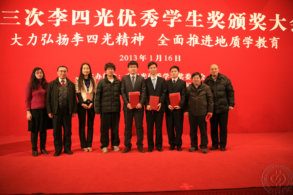 在本次评选中,地球科学学院2009级硕士生高平、2009级本科生王友伟以优异成绩与突出表现,从全国众多参评学生中脱颖而出,获得“第三次李四光优秀学生奖”。高平曾以第一作者身份发表学术论文2篇,其中国际SCI1篇,国内核心期刊1篇;王友伟学习成绩优异,曾在多项国家、国际级别学科竞赛中获奖,还曾获北京市三好学生、“先锋杯”优秀团员等荣誉称号。“第三次李四光优秀学生奖”全国共有15名学生获奖,其中李四光优秀博士研究生奖4名、优秀硕士研究生奖5名,优秀大学生奖6名。